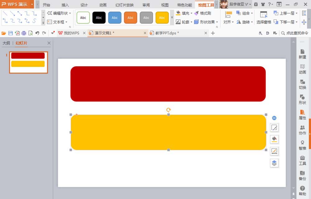 3、按下ctrl键可自动增加一个圆角矩形图案,鼠标右键可填充颜色为黄色。如图