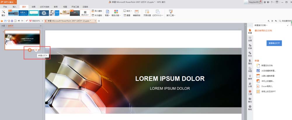 1、打开PPT2007幻灯片,添加幻灯片;