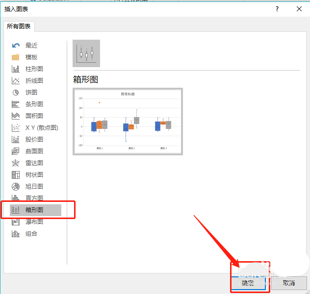 4、点击【图表】选择,【箱型图】并点击确定