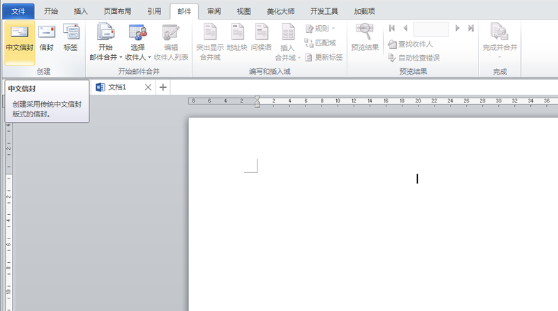 2、执行邮件菜单,从工具栏中选择中文信封选项。