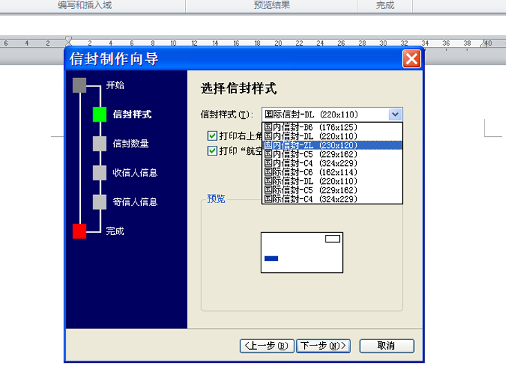 3、在信封制作向导中,选择信封样式,接着选择自己需要的一种样式,这里选择国内信封。