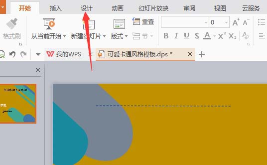 2、打开ppt的模板之后,进行点击ppt的菜单中的设计的菜单。