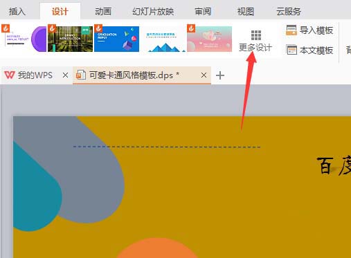 3、进行点击了设计的菜单之后,然后进行点击更多设计的选项。