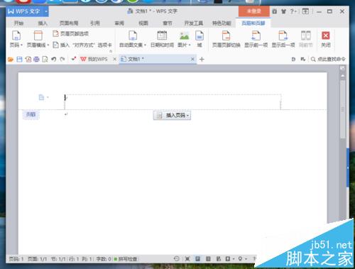 3、点击页眉和页脚选项后,在Wps文字编辑区域弹出页眉和页脚的编辑区域。如图所示;