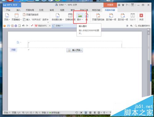 4、接着,点击页眉和页脚菜单工具栏中的“图片”选项。如图所示;