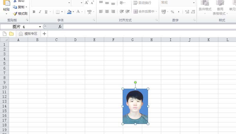 1、首先启动excel2010,执行插入-图片命令,将事先准备好白底照片插入到工作表中。