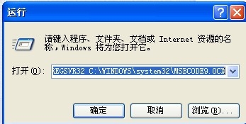 4、打开运行对话框,输入:REGSVR32 C:\\WINDOWS\\system32\\MSBCODE9.OCX,对这个文件进行注册,这样才能使用。打开“运行”对话框的快捷键:WIN+R。