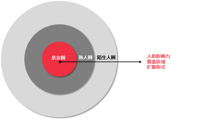 人的影响力是一个逐步扩散的过程,首先从亲友圈开始,逐渐扩展到熟人圈,再进一步触及陌生人圈。